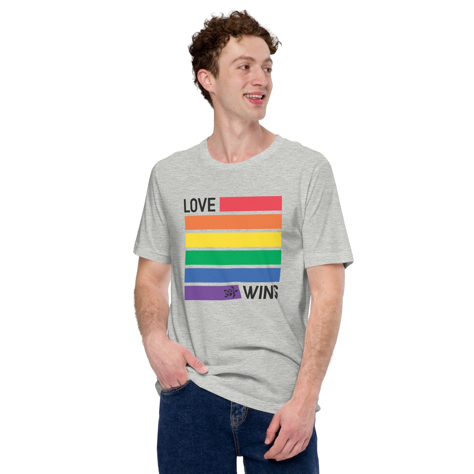 Celebre o triunfo do amor e da igualdade com a nossa inspiradora Camiseta “LOVE WINS”. Esta peça é um testemunho da resiliência e da luta pela diversidade e inclusão. A estampa apresenta as cores vibrantes do orgulho LGBT, simbolizando a força e a vitalidade da comunidade.